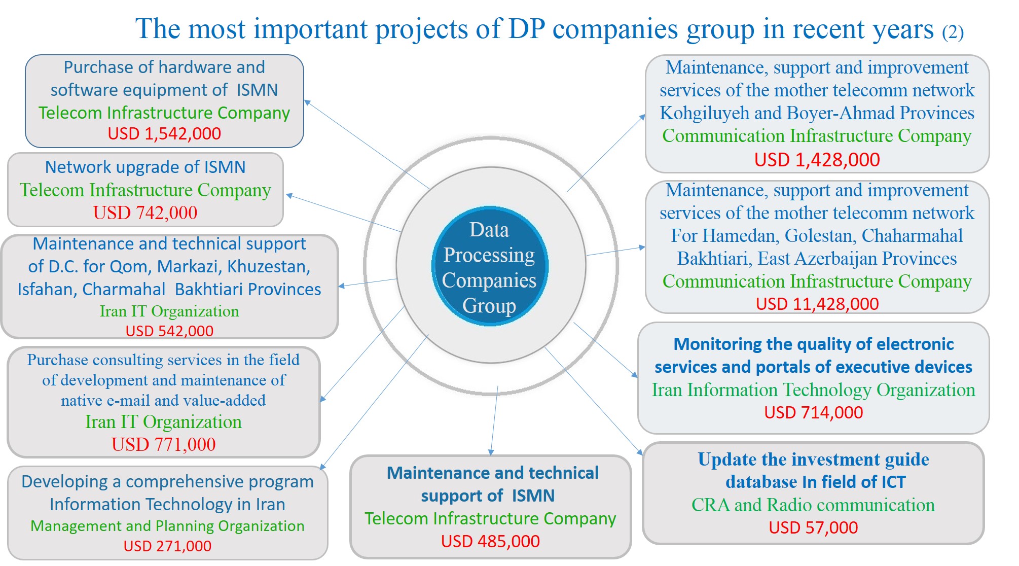 Outstanding capabilities 1. Strategic management at two levels of firms and parent organizations 2. Policy-making at the national and provincial levels and the development of national development plans 3. Presenting the country's infrastructure plans in the field of communications 4. Manage innovation at the enterprise level and support startups 5. Consulting and implementation in the field of business-IT alignment 6. Business Performance Management 7. Analysis, design and implementation of software systems 8. IT Governance Consulting and Implementation 9. Consulting, design and implementation of information security management systems (ISMS) and related standards such as ISO / IEC 17799 and ISO / IEC 27001 10. Provide comprehensive network management solutions 11. Design and implementation of high-speed Data Center networks 12. Design and implementation of Network Operation Center 13. Analysis, design and implementation of smart product in order to manage telecommunication, tactical and computer networks. 14. Provide DCIM data center infrastructure management solution 15. Design and implementation of DP Billing product in order to perform all billing activities for telecommunication and computer networks 16. Experience and capability in project implementation in the field of IoT on a large scale and nationally. 17. Subscriber management system and function collection (accounting)